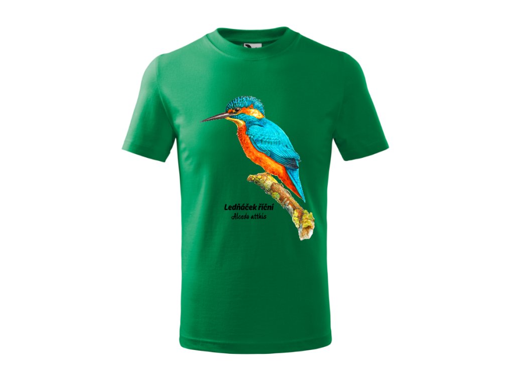 Dětské tričko - Ledňáček říční- zelené, velikost 8 let