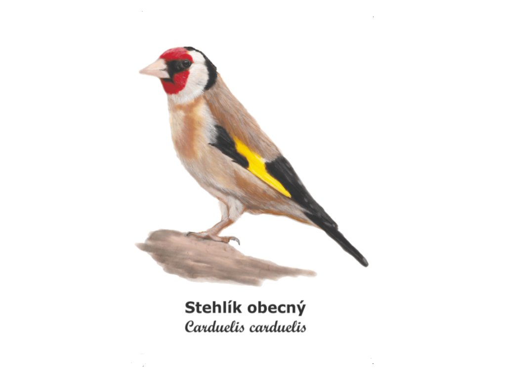 Samolepka s ptákem - stehlík obecný - rozměr A3